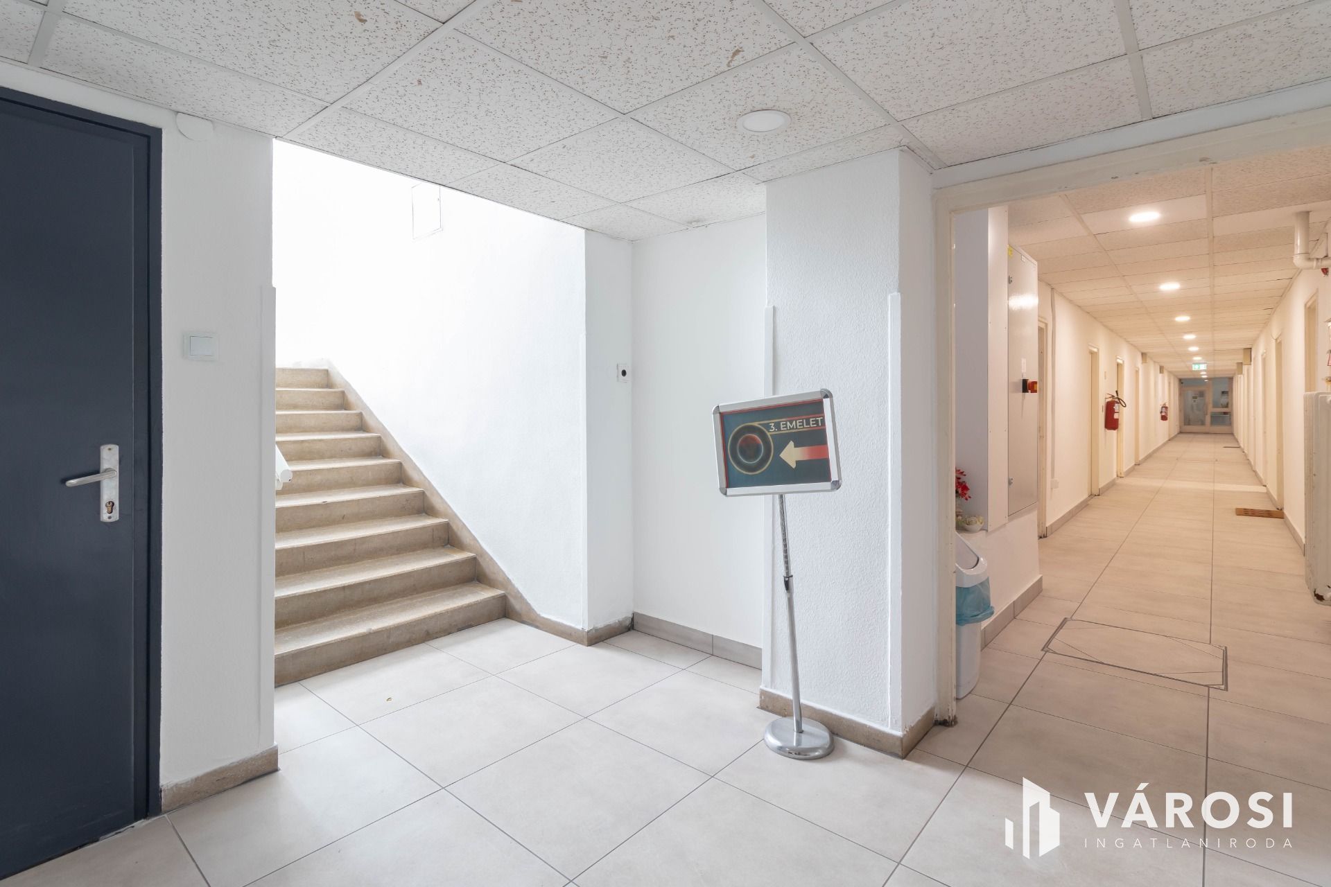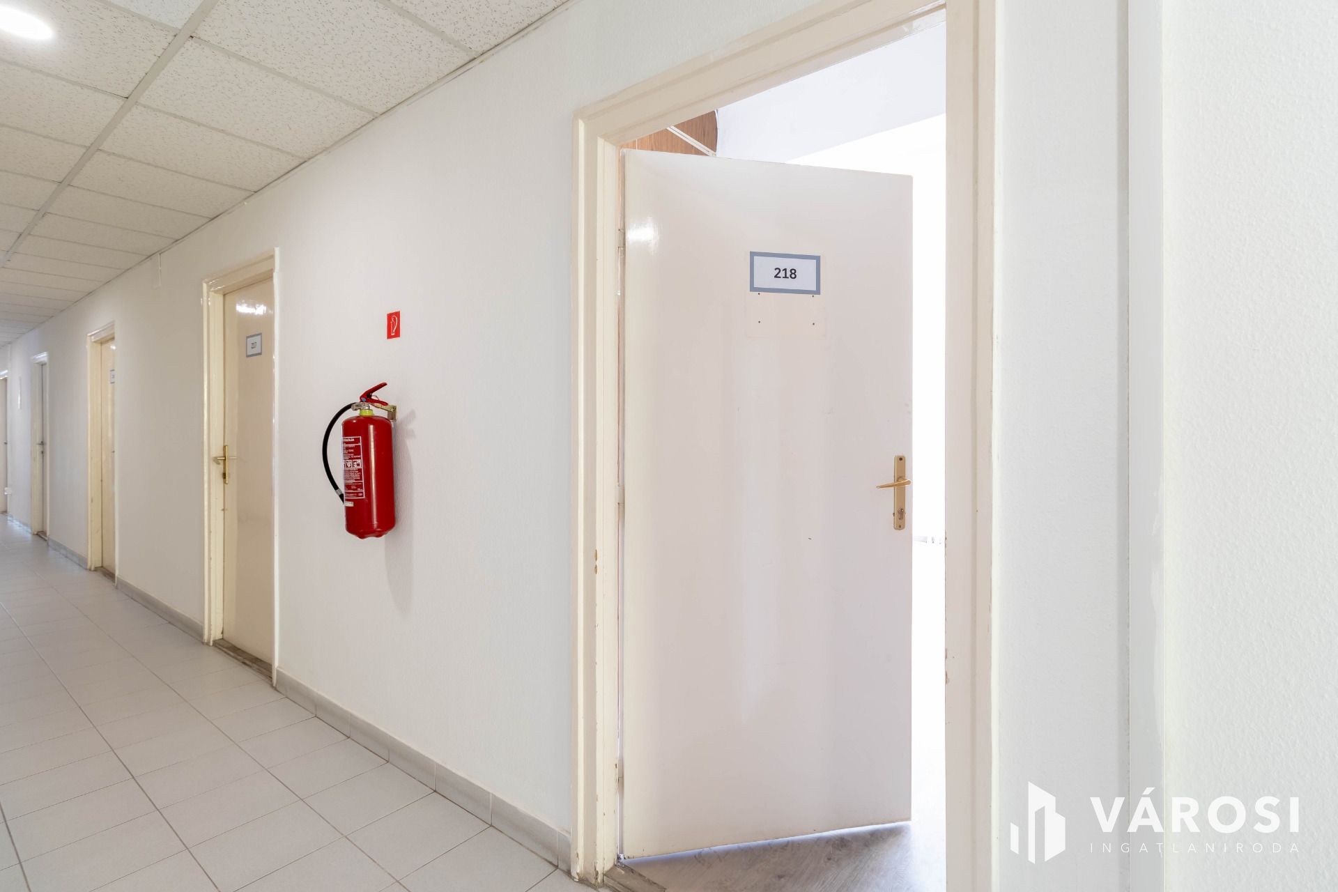 A 16 m2-es iroda az irodaház 2. emeletén helyezkedik el. A helyiség laminált padlóval burkolt.
