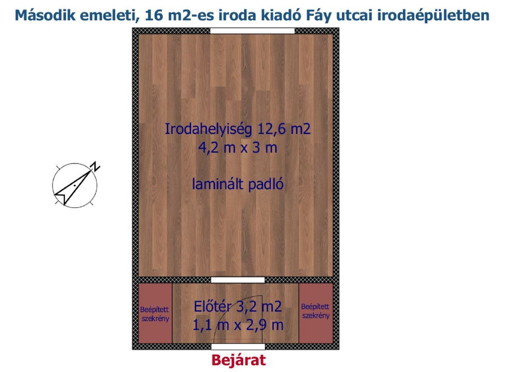 2. emeleti, 16 m2-es iroda kiadó Fáy utcai irodaépületben