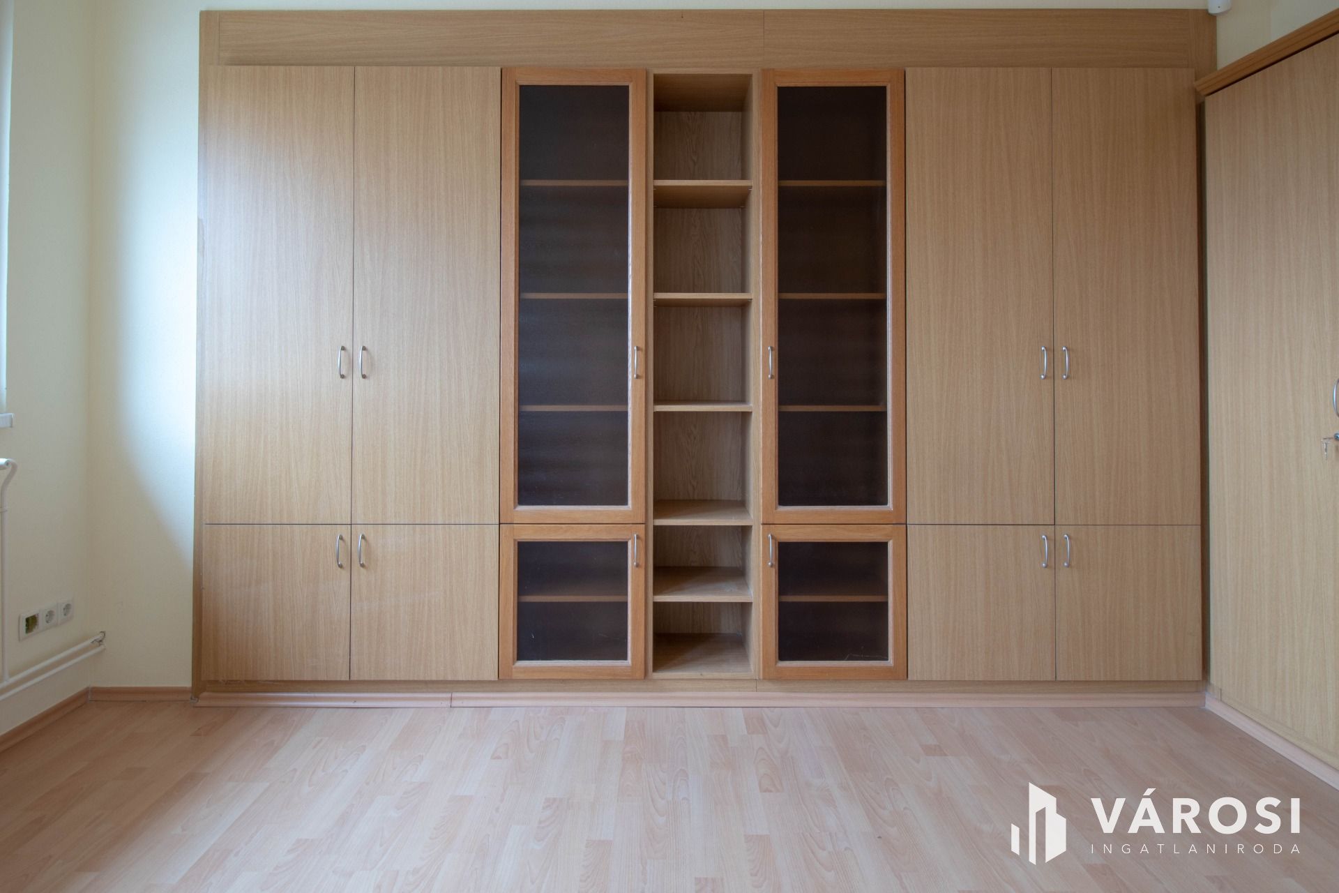 A helyiség egyik végét egy közel 4 m széles, 42 cm mély beépített szekrény zárja, illetve van még a helyiségben egy 230 cm széles, 37 cm mély szekrény, páncélszekrénnyel egybeépítve, valamint egy kisebb, 110 cm széles szekrény is.