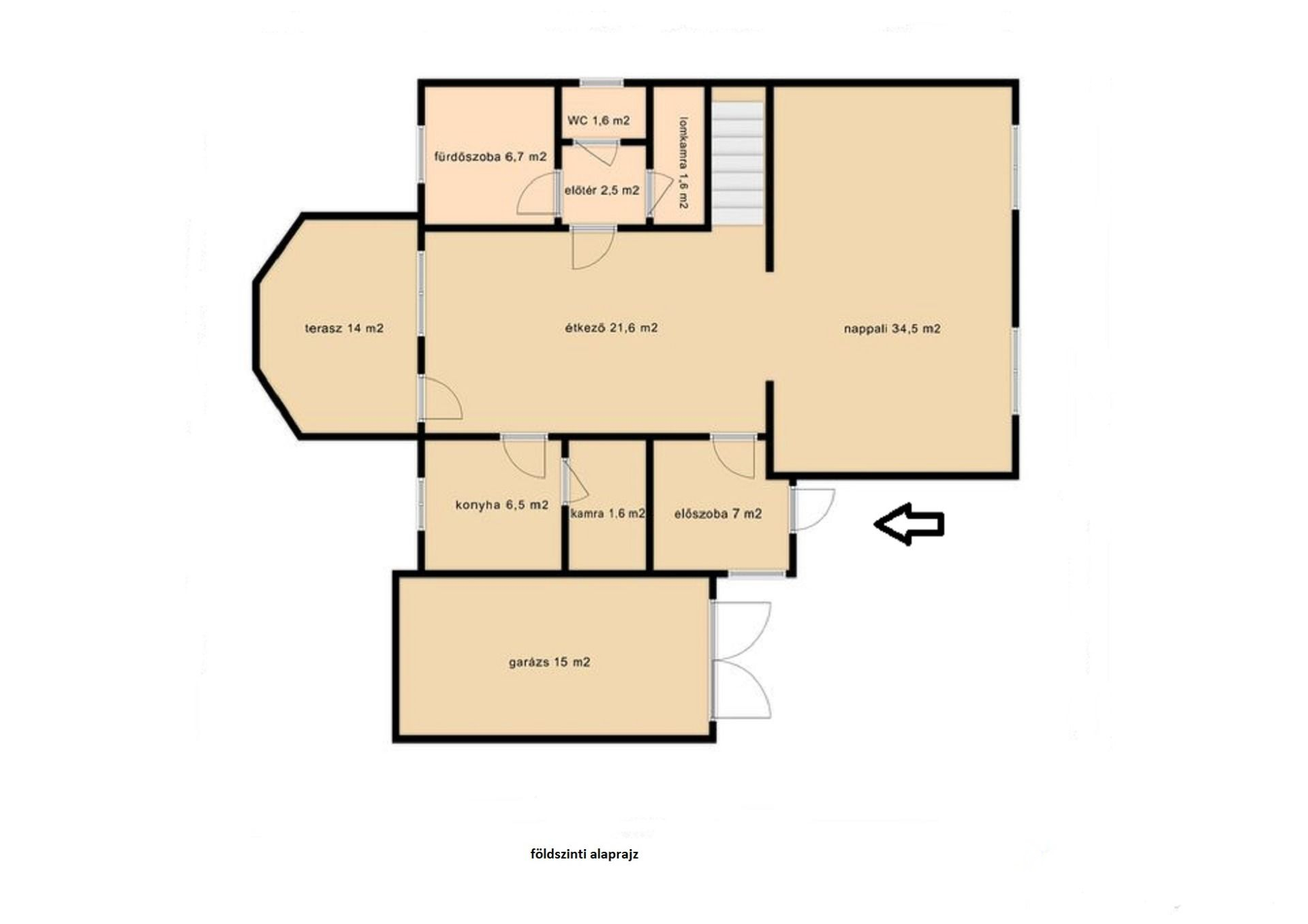 A nagy épület földszintjén található: egy előszoba, nappali, étkező, konyha, kamra, fürdőszoba, WC, és tároló, az emeleten kapott helyet 4 további szoba, egy félszoba, egy kisebb nappali, fürdőszoba és WC