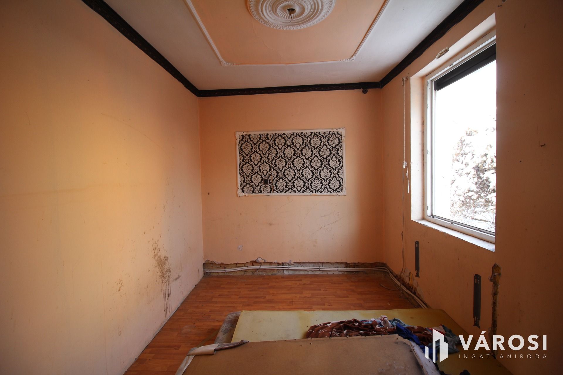 Valamikor szebb napokat látott, de jelenleg elhanyagolt, felújítandó családi ház keresi új gazdáját. A ház szép padlóburkolattal kialakított, hatalmas nappalival, két szobával, nagy konyhával, fürdőszobával, és tágas előszobával rendelkezik. A falak téglából épültek, a tető lemezes cserép héjalású. Az ablakok redőnyös, dekoratív, többszörösen hőszigetelt műanyag ablakok, sajnos a legtöbbön törött az üveg, javításra, illetve cserére szorulnak. Az ingatlan lakatlan, jelenleg nincs fűtés sem benne, de eredetileg minden közmű bekötéssel rendelkezett. Az ingatlan a felújítás után a jelenlegi vételár többszörösét fogja érni.