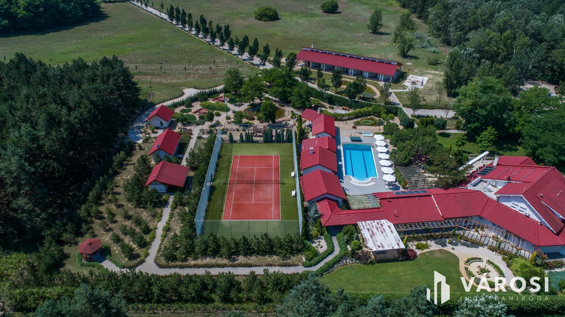 Eladó egy 9 ha kivett területen található összesen 3534 nm magas minőségű épületegyüttes. Az ingatlan komplexum konferencia- és egészségügyi központként működik, szálloda és étterem szolgáltatással. Az ingatlan a Kiskunság keleti peremén, az M5 autópályától mintegy 10 kilométerre, részben érintetlen erdővel határolt területen található.