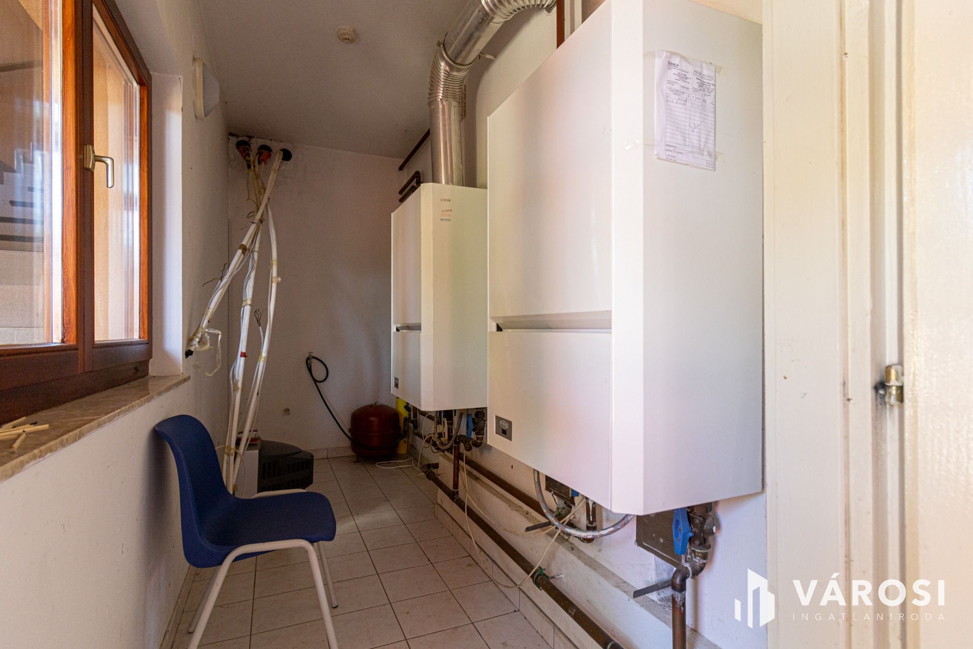 Fűtés gázkazán, radiátor, hőleadókkal megoldott.