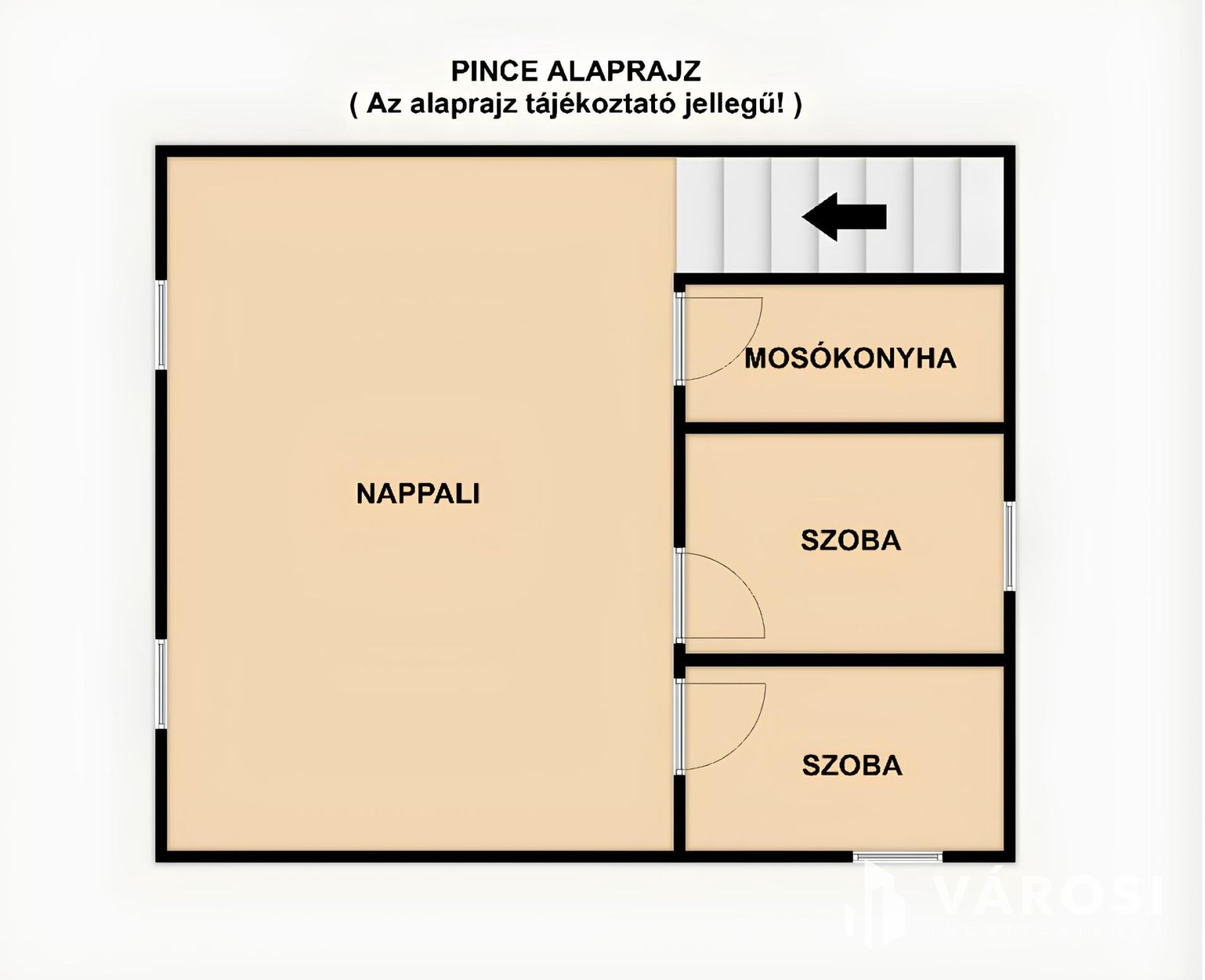 Az épület 2 szintes, a földszinten található 1 előszoba, 1konyha-étkező, 1 fürdőszoba, 2 wc, valamint 2 szoba. A pincerészben található egy hatalmas nappali, valamint 3 szoba, melyből jelenleg 1 mosókonyhának van kialakítva.