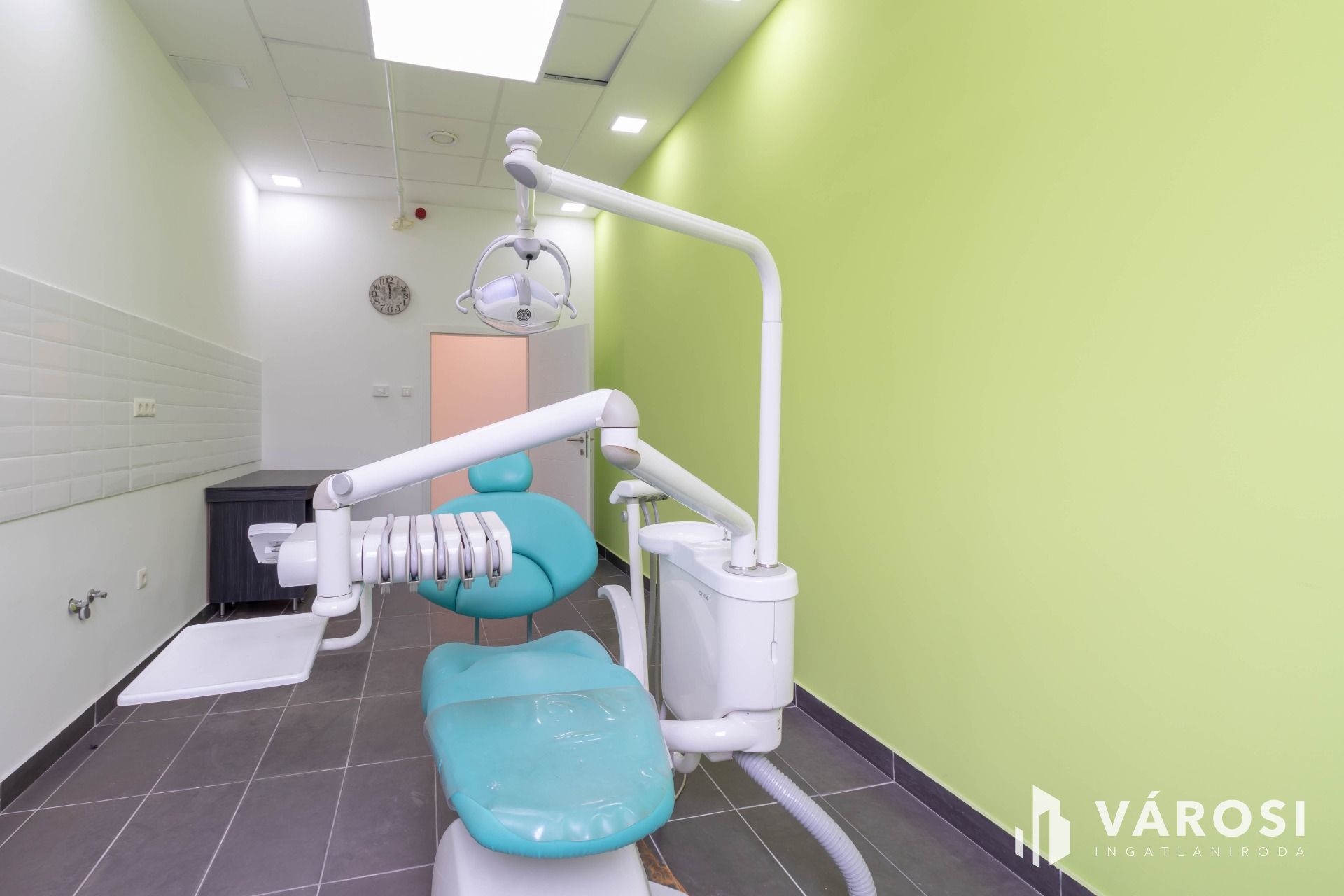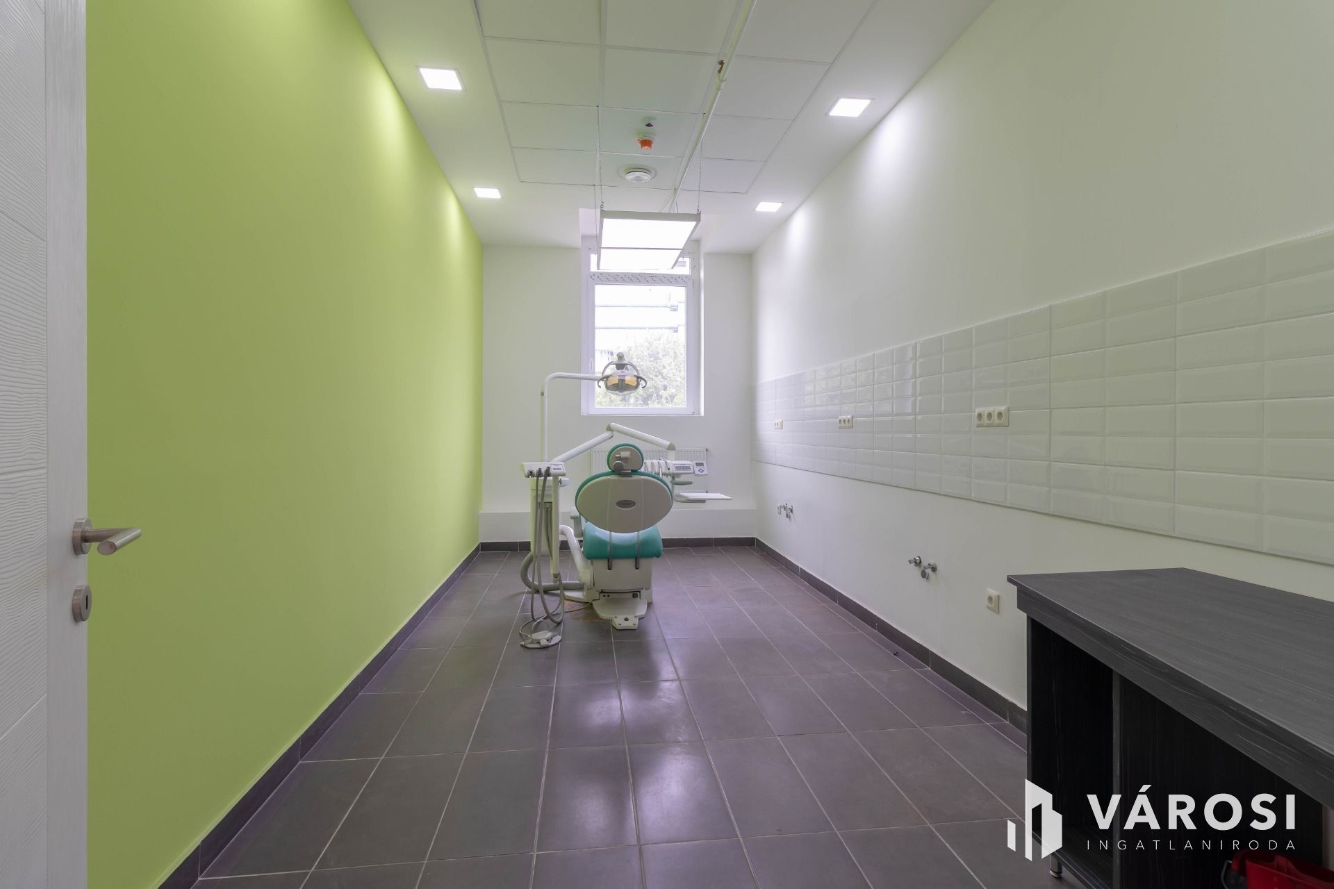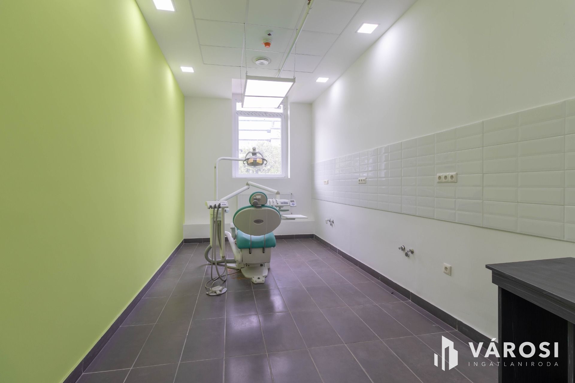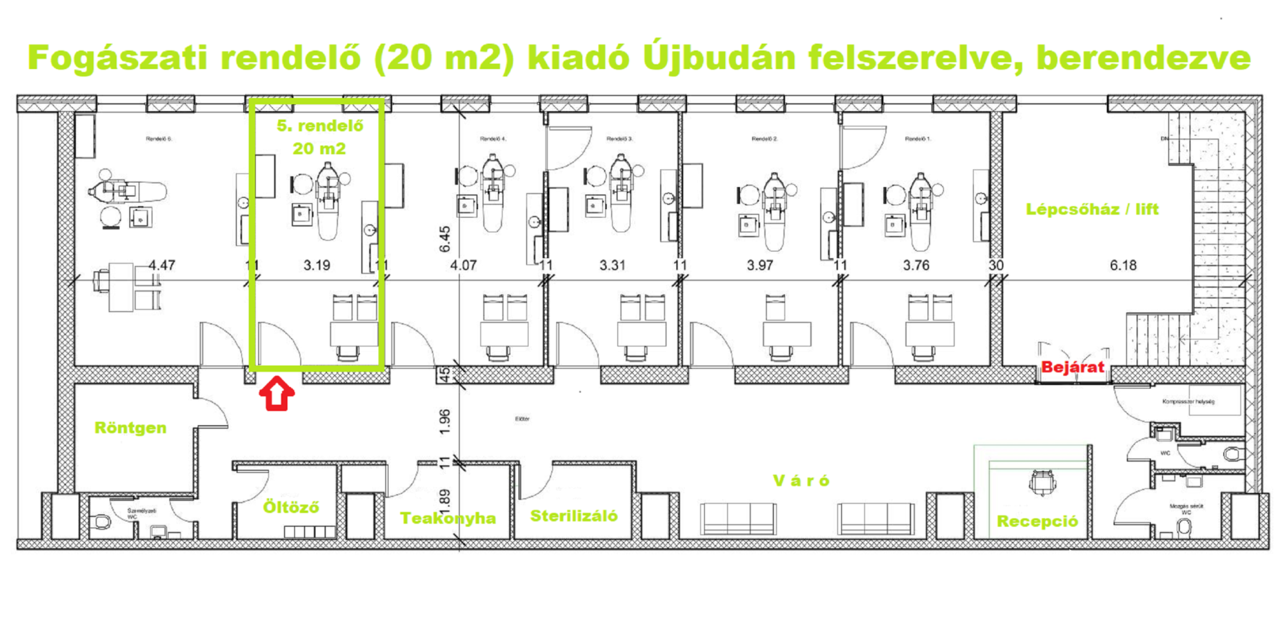 A komplexumban egymás mellett 6 rendelő kiadó, ez a rendelő 20,5 m2 alapterületű, teljesen felszerelt, Optimal 09 kezelőegységgel, fogászati eszközökkel és rendelői bútorzattal ellátott.