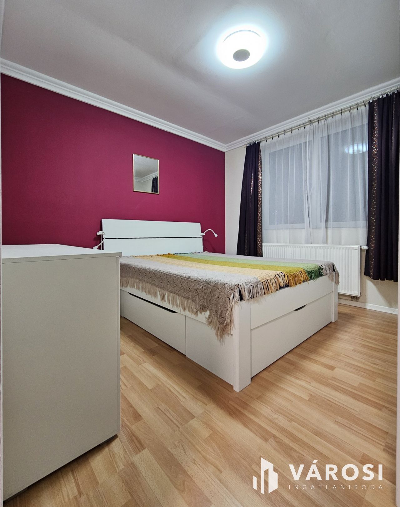 • világos szoba beépített gardróbbal (~16 m²)
