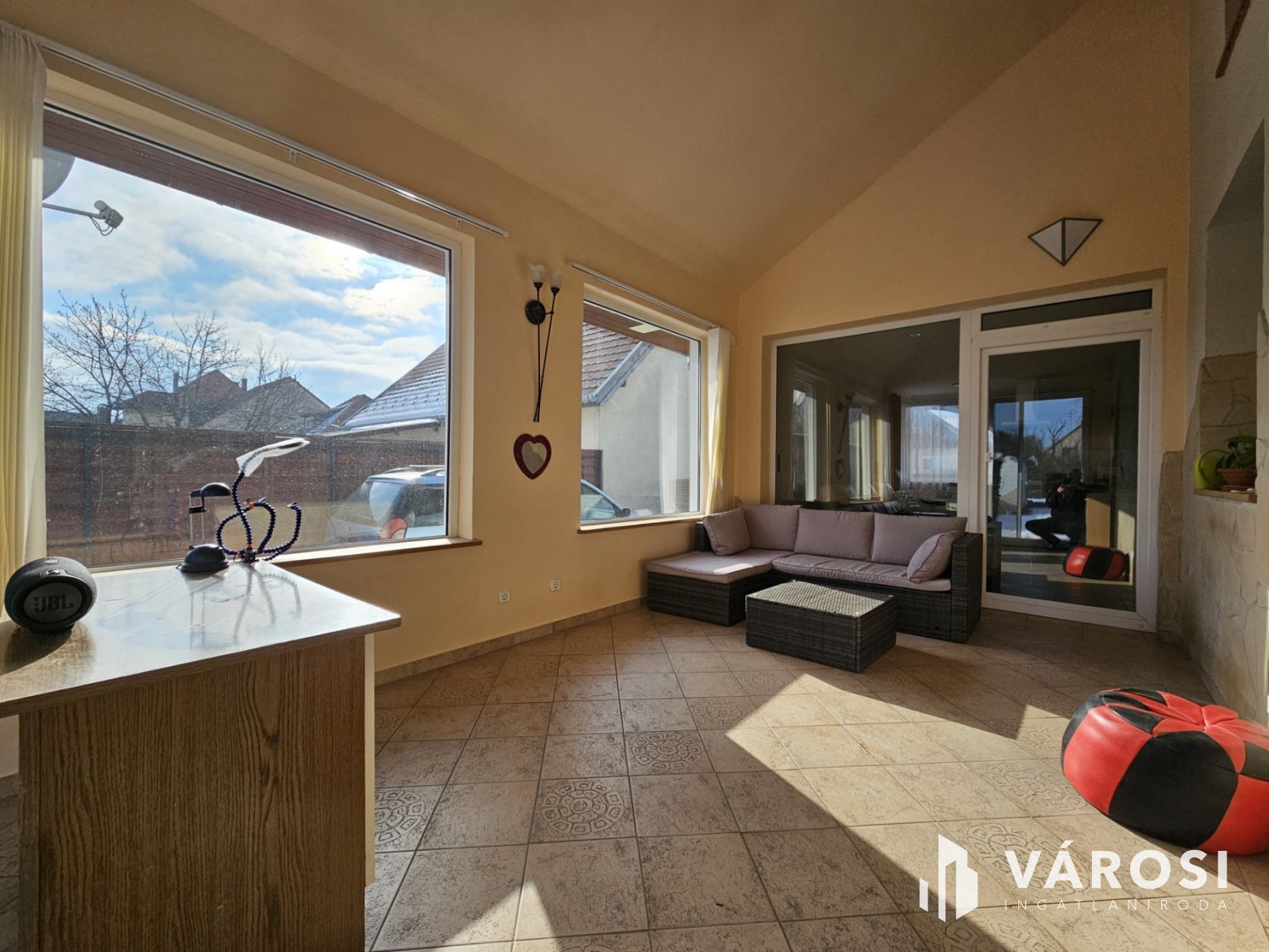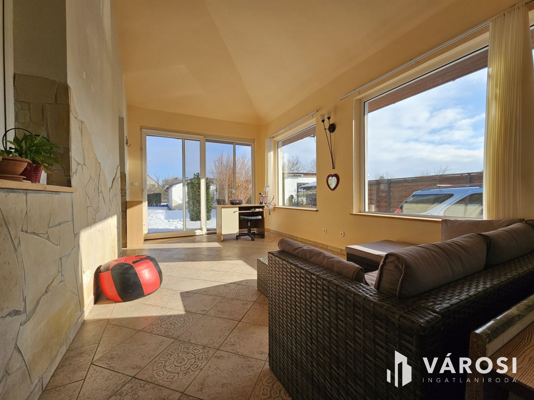 • valamint a nappaliból közvetlenül elérhető egy körben zárt, nagy üvegfelületekkel rendelkező, rendkívül világos télikert (~20 m²)