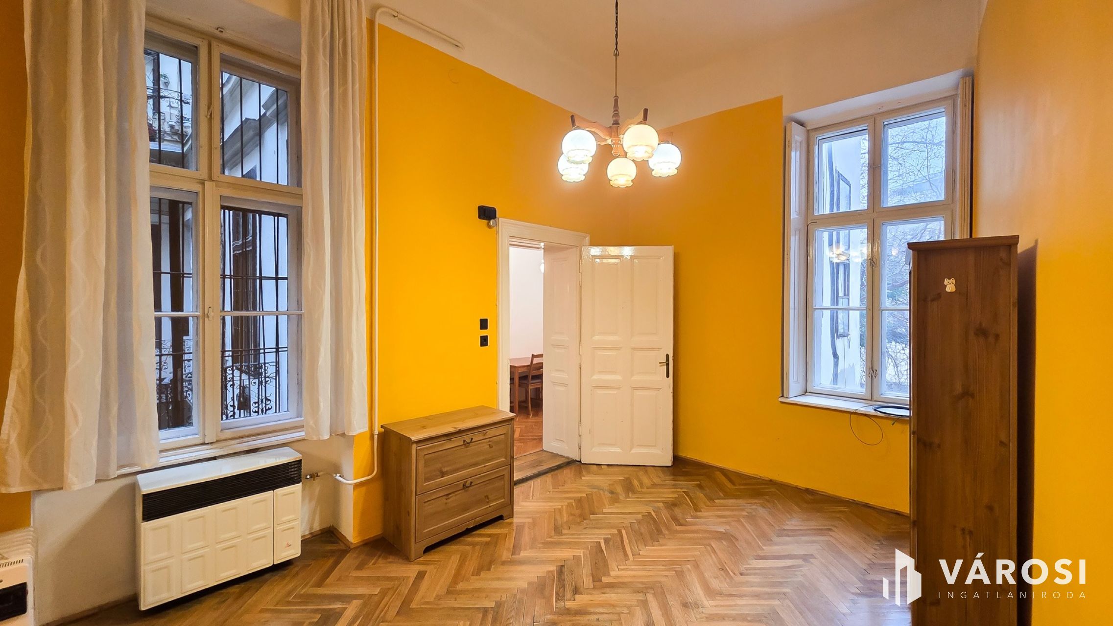 Kiadó a IX. kerületben, a Ferenc körúton egy első emeleti, nappali + hálószobás 50 m2-es lakás.