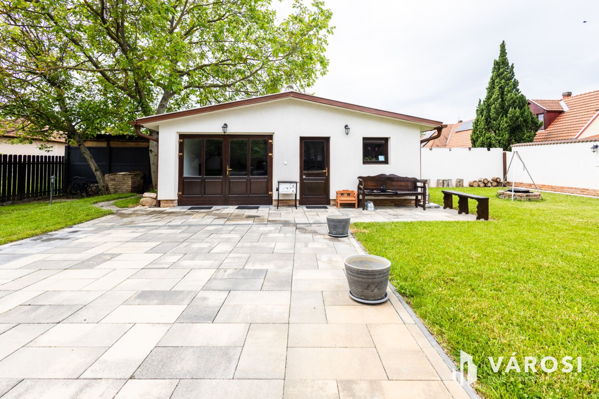 - az udvar térkövezése is megtörtént, illetve több kocsibeálló is kialakításra került, melyek az utcafrontról két elektromos kapun keresztül közelíthetőek meg