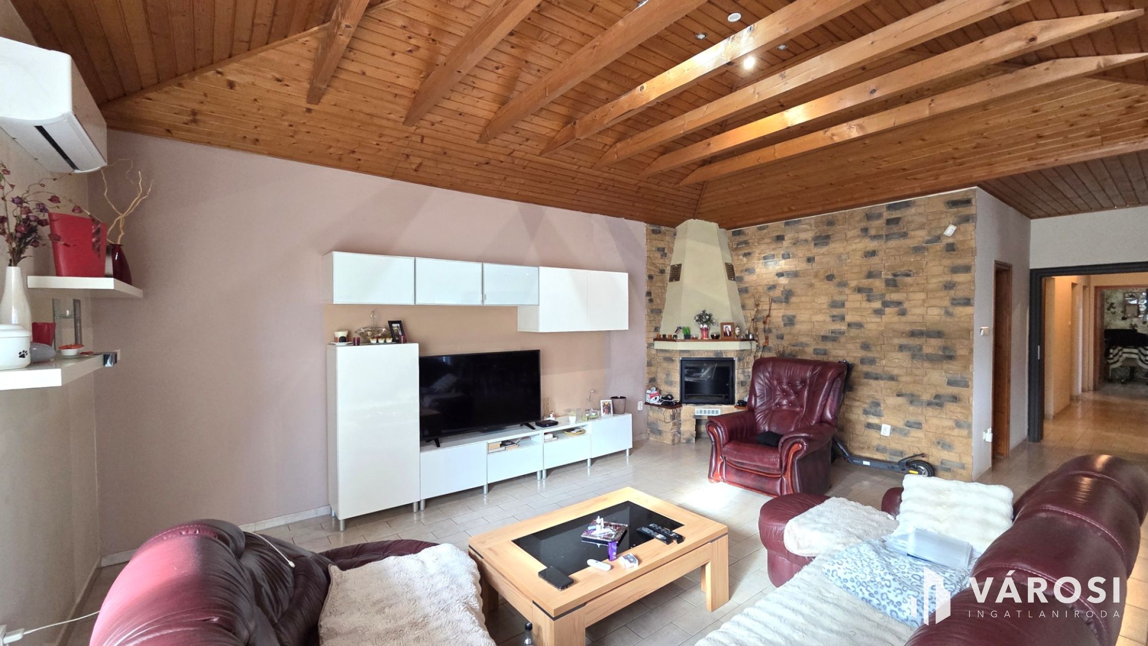 A berendezett belső tér prémium anyagok felhasználásával készült, így garantálva a legmagasabb komfortérzetet. A padlófűtés radiátoros kiegészítéssel és a klíma gondoskodik az egész éves kellemes hőmérsékletről, míg a vízteres kandalló meghitt hangulatot biztosít a hidegebb hónapokban.
