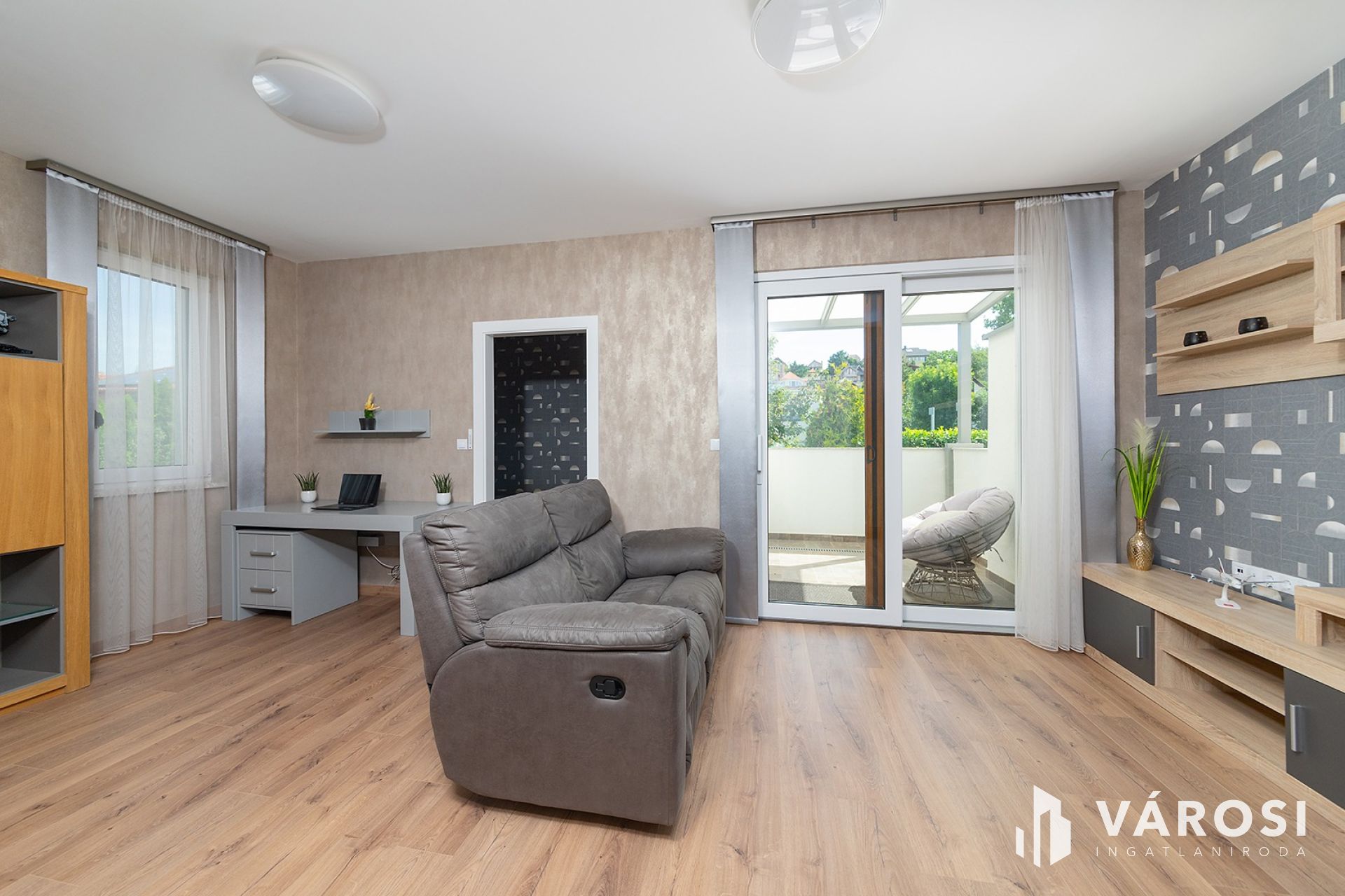 • Kisebb házrész: teljesen szeparált bejárattal rendelkezik, amerikai konyhás nappali, fedett terasz, hálószoba saját gardróbbal és fürdőszobával, külön vendégmosdóval – ideális vendéglakásnak, irodának vagy rendelőnek.