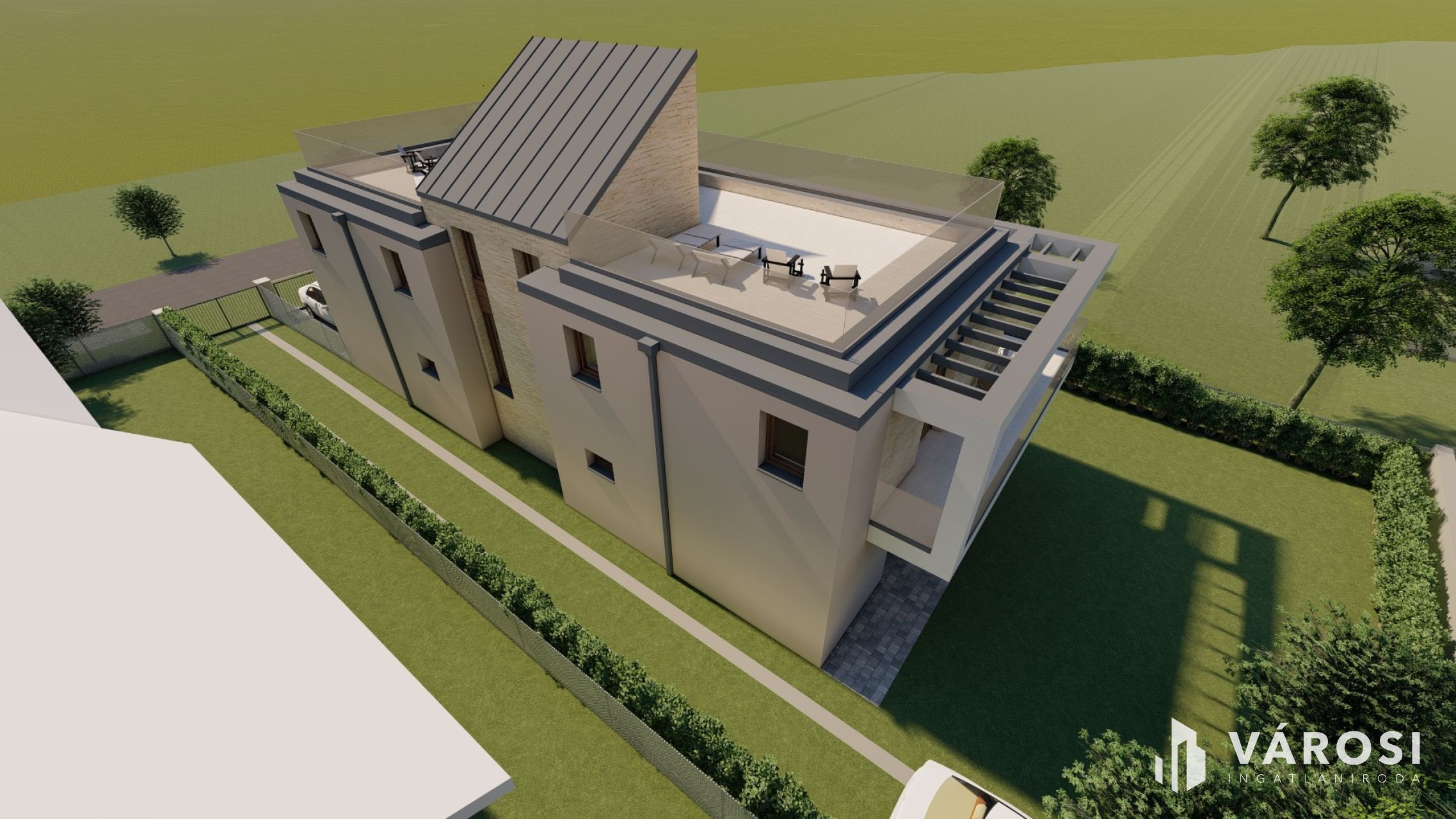 Siófok egyik legexkluzívabb, új építésű lakóparkjában kínálunk eladásra egy nettó 110 m2-es, prémium minőségű ikerházat, amelyhez ezen felül tartozik egy 24 m2-es terasz, egy 23,49 m2-es erkély és egy 37,16 m2-es tetőterasz. Az ingatlan tervezésénél rendkívüli figyelem lett fordítva a telek adottságainak maximális kihasználására, ezért a házból lenyűgöző, zavartalan panoráma nyílik a Balatonra, így minden nap a tó látványában gyönyörködhet!