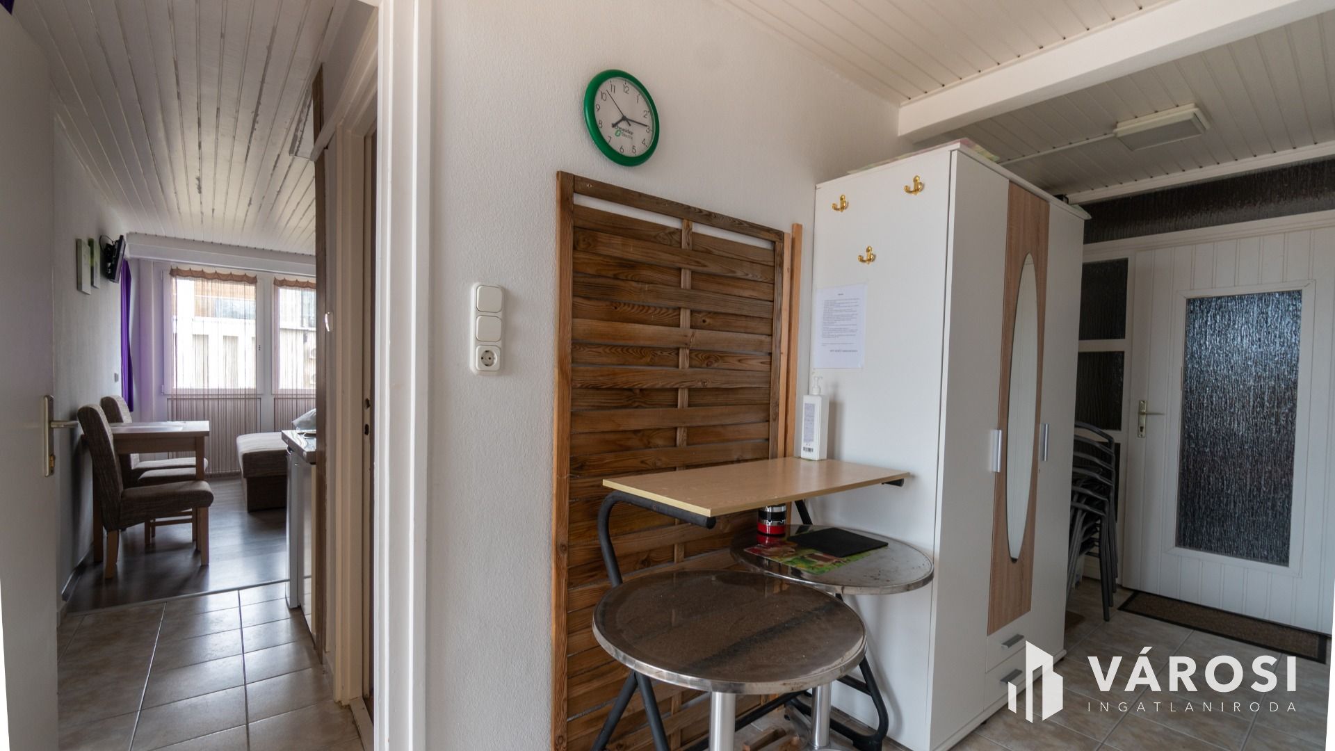 Eladó Siófok Aranyparti részén épült társas üdülő első emeletén lévő balatoni panorámával rendelkező gyönyörű nyaraló. A lakás mindössze 150 méterre található a híres siófoki Aranyparttól. A partszakasz ezen része ingyenes, így korlátlanul élvezheti a Balaton nyújtotta lehetőségeket. Busz- és vasúti megálló, boltok, éttermek pár perc sétára találhatóak. Az ingatlan 2021-ben nagy felújításon esett át, melynek keretében új laminált parketta lett lerakva, valamint a teljes berendezés A-tól Z-ig kicserélésre került. A klíma kellemes hőmérsékletet biztosít még a legtikkasztóbb nyári napokon is! A nyaraló teljesen berendezett, így azonnal költözhető. Emellett közös tároló is rendelkezésére áll.