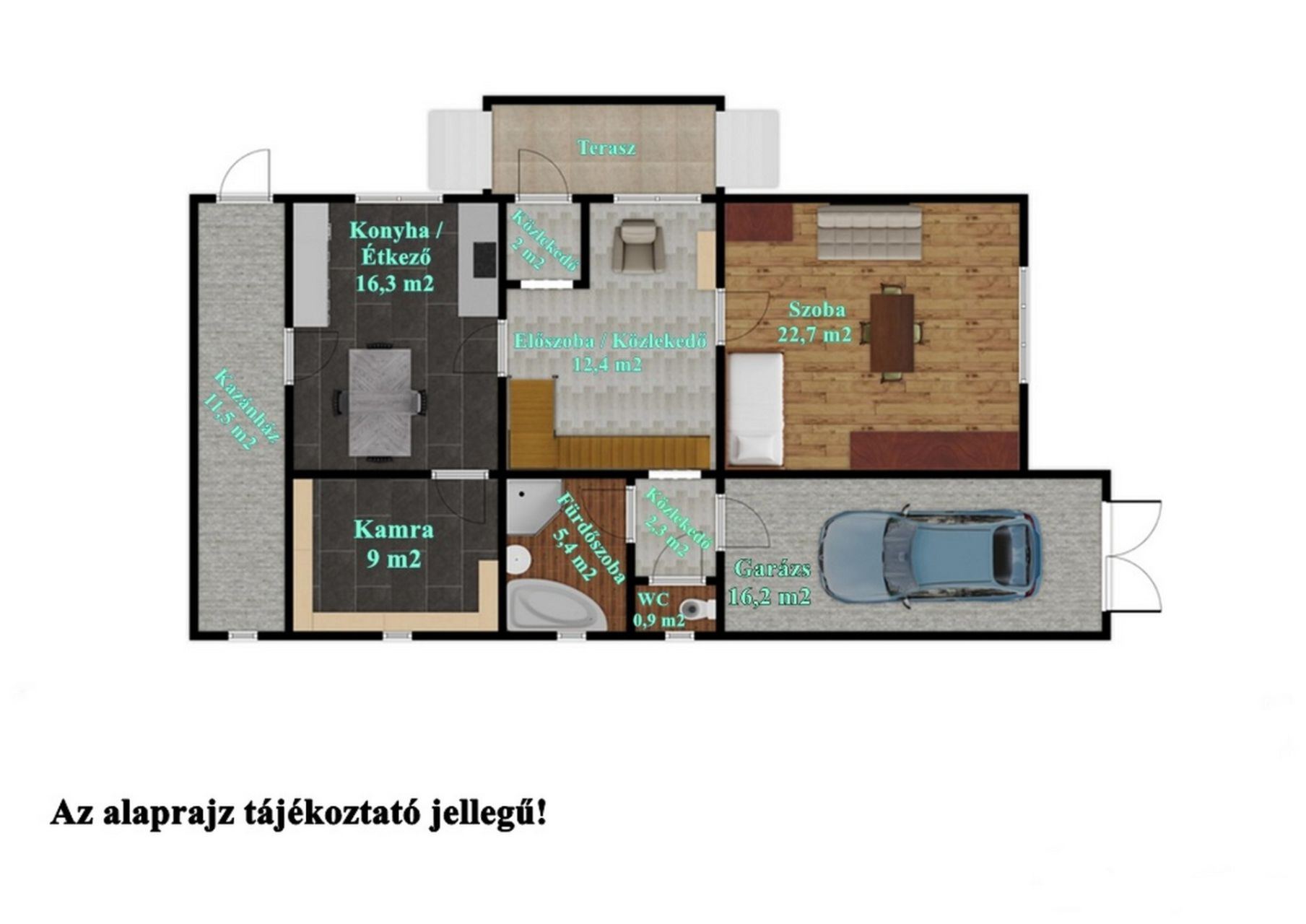 - Garázs a házban – kényelmes tárolás és parkolás.