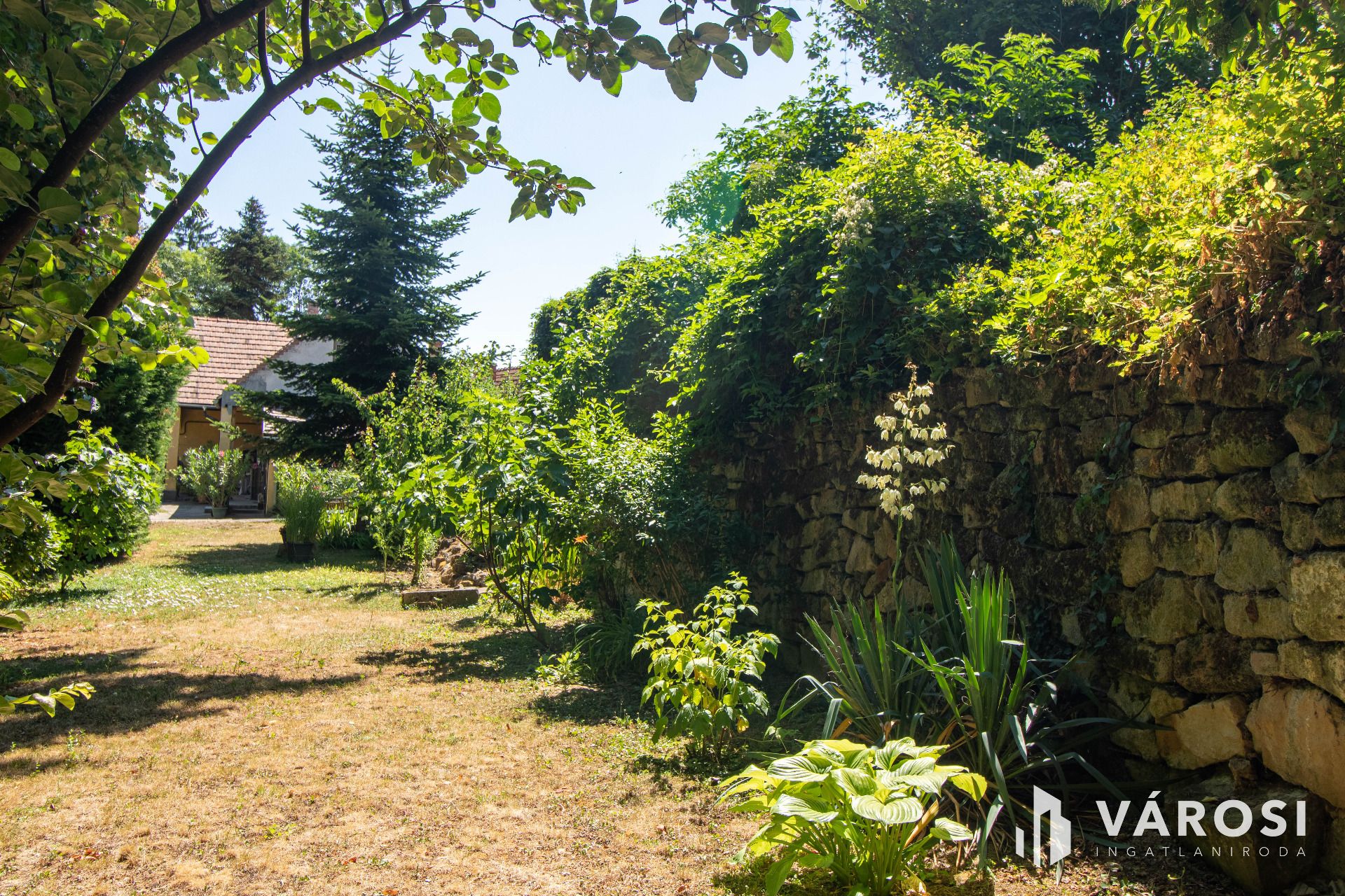 A házhoz tartozik egy pince, tárolóhelyiségek, valamint egy kis fedett terasz is. A kert rendezett, tele virágokkal, kerti kiülővel, a telekhatárt pedig egy körülbelül másfél méter magas, régi kövekből rakott kőfal szegélyezi, amely sajátos hangulatot kölcsönöz az udvarnak. Minden közmű be van vezetve, az ingatlan infrastruktúrája teljes. A környéken karnyújtásnyira megtalálható minden fontos szolgáltatás: bolt, iskola, óvoda, orvosi rendelő, tömegközlekedés – tényleg csak pár lépésre van minden.