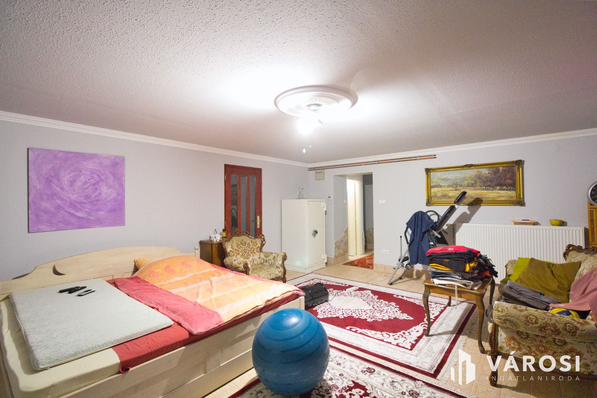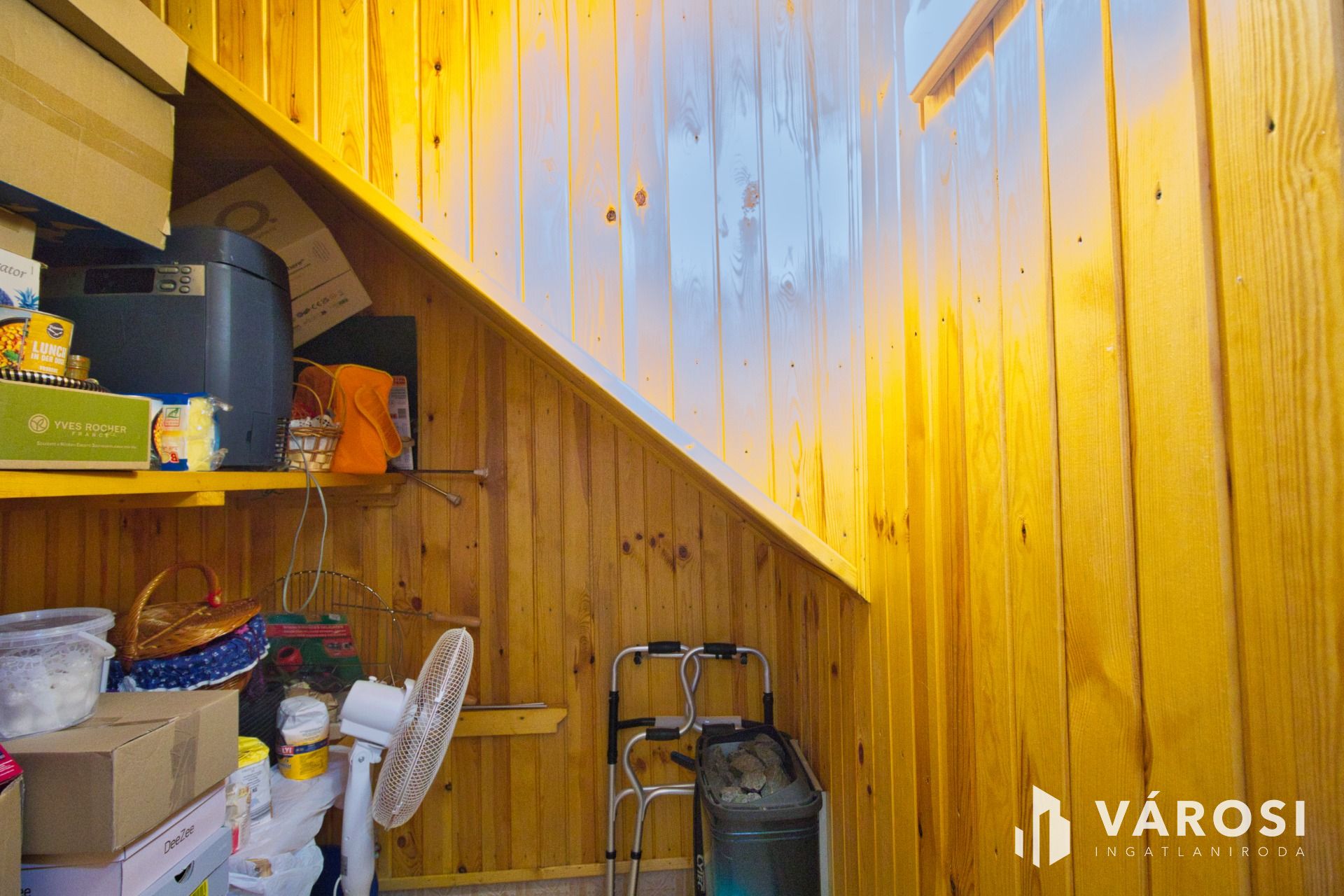 ALAGSOR: Folyosó, 3 szoba, 1 fürdő, 1 szauna, WC, mosókonyha, garázs.