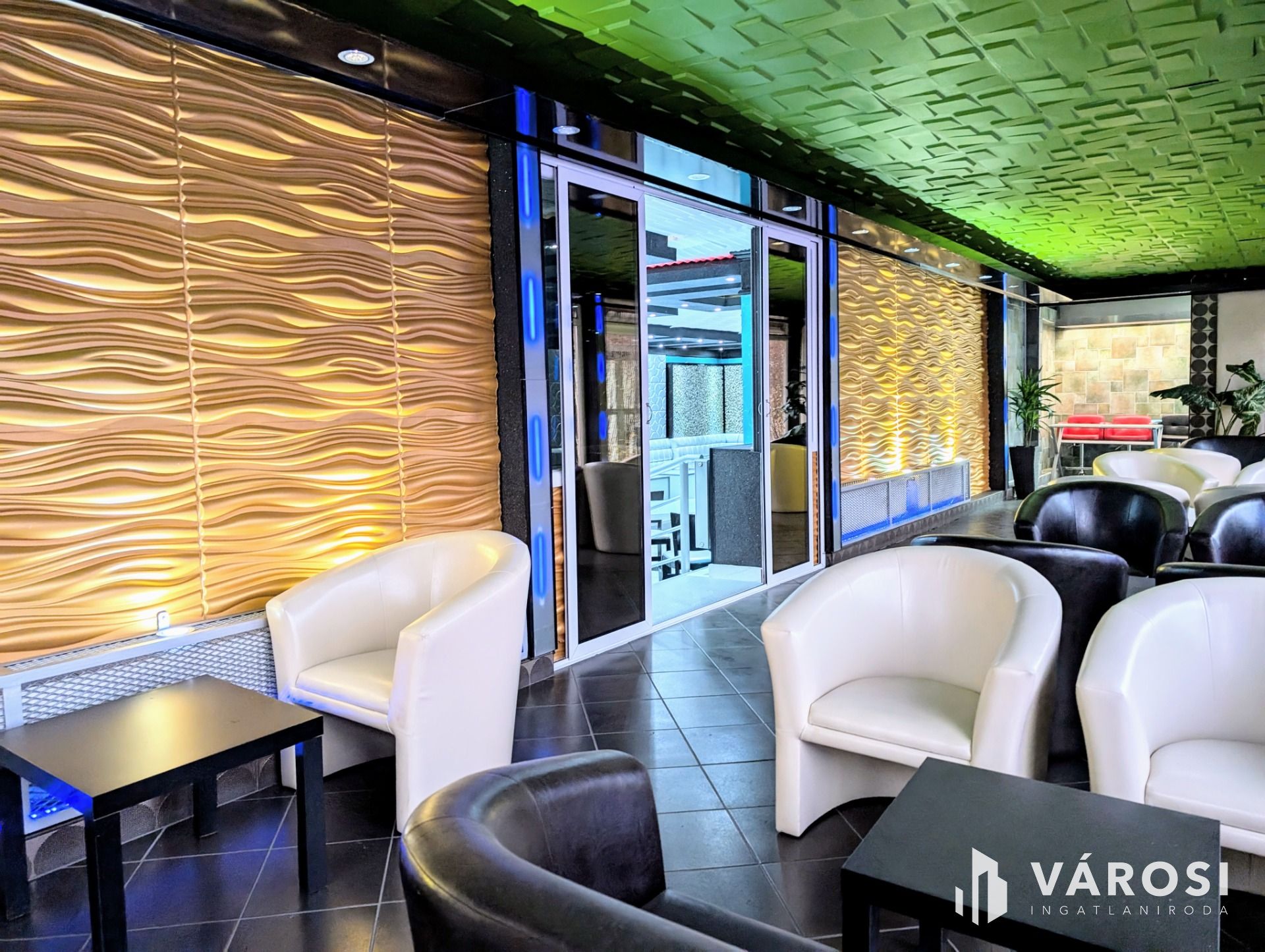 Gyula belvárosának közepén, sétáló övezetben, vízpart mellett kiadó egy elegáns, exkluzív berendezéssel és felszereltséggel, dizájnnal rendelkező vendéglátóhely, bár, zenés szórakozóhely, privát klub (jakuzzival, privát tánctérrel, saját vizesblokkal).