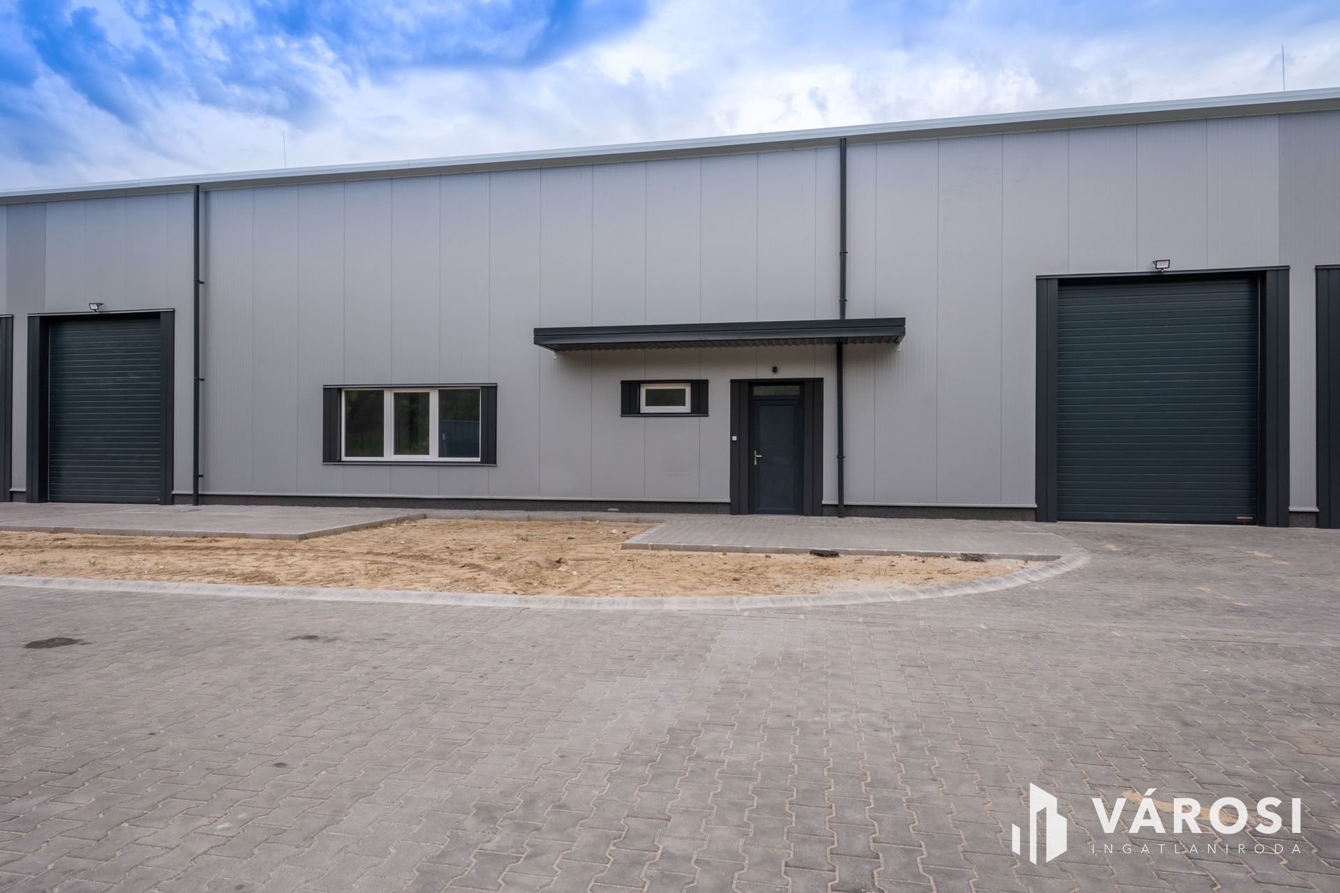 Eladó Alsónémedin, az ipari parkban, újonnan épült raktárépületben, egy 675 m2-es, 2 kapun rakodható raktár csarnok.