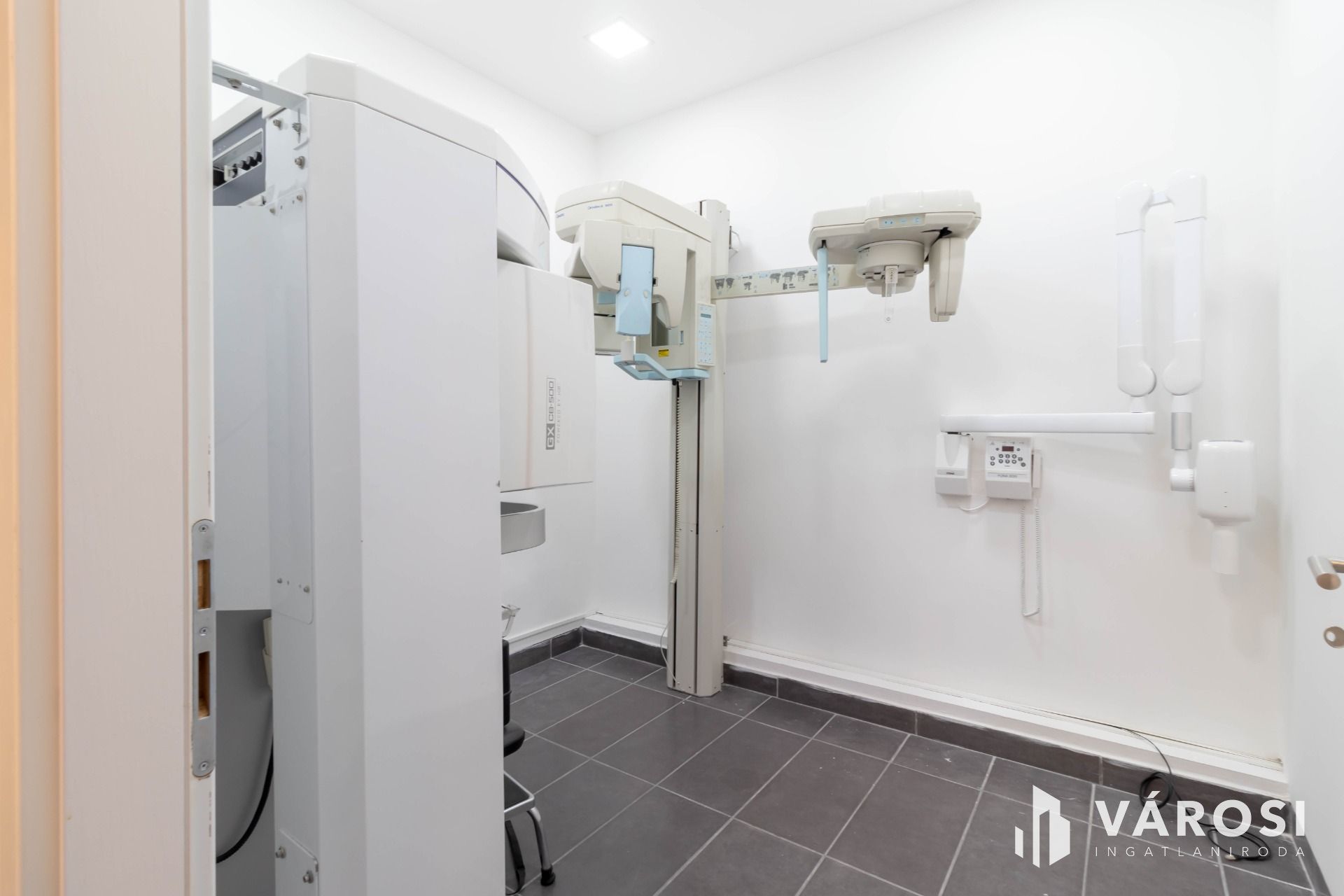 Rendelkezésre áll a további 5 rendelővel közös használatban sterilizáló helyiség, röntgen helyiség, valamint személyzeti öltöző és teakonyha.